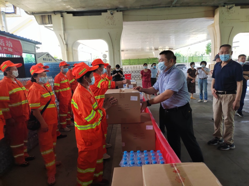 近日,武漢持續高溫天氣給環衛作業帶來了極大的考驗。為保障環衛工人身心健康,做好防暑降溫,武漢市城管執法委聯合人保財險、太保產險組織開展了“2022年為武漢市環衛工人夏日送清涼送關愛”活動,為奮斗在一線的環衛工人送上感謝與慰問。