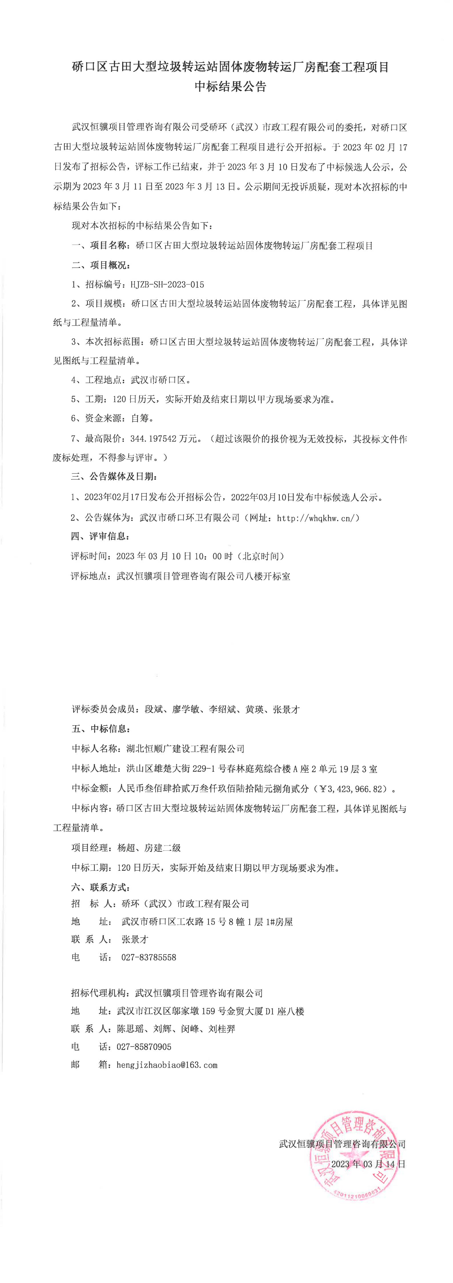 固體廢物轉(zhuǎn)運廠房配套工程項目中標結(jié)果公示