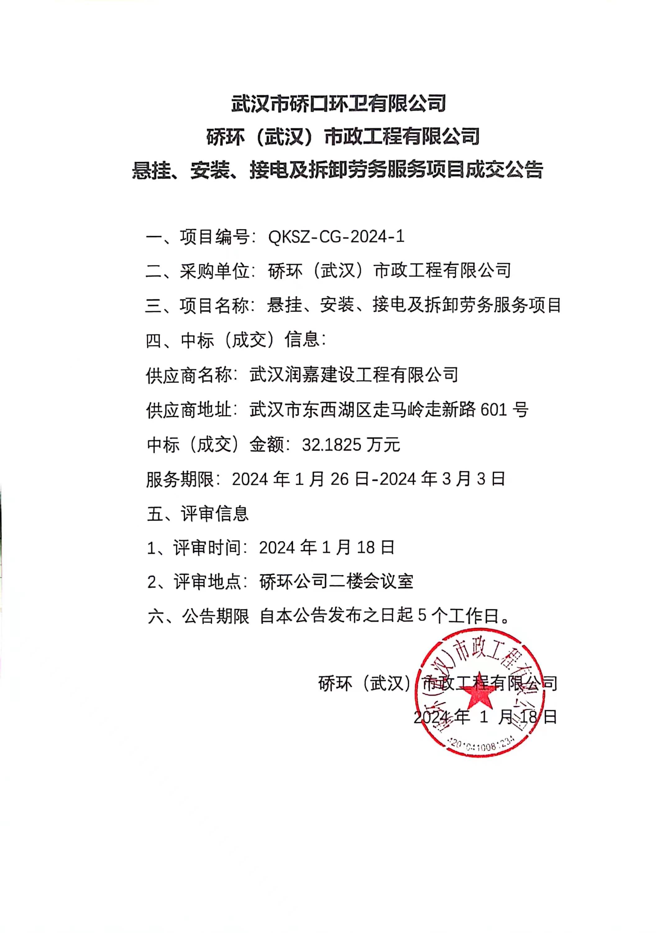 懸掛、安裝、接電及拆卸勞務(wù)服務(wù)項(xiàng)目成交公告