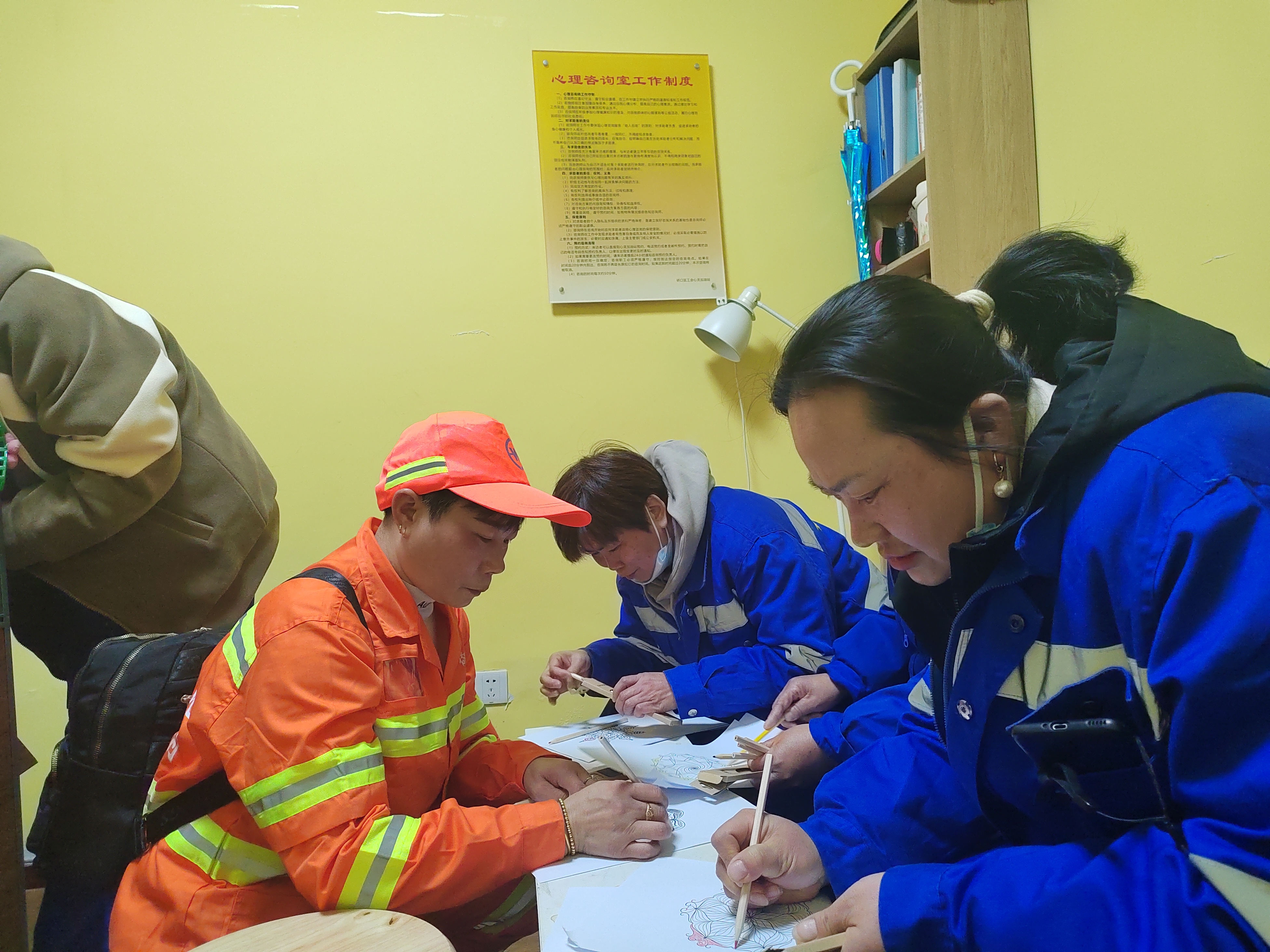 之后,在專業人員的帶領下,大家還體驗了“圈住幸福”、“心有靈犀”、“繽紛曼陀羅”以及創新手工競賽等活動,紛紛表示體驗項目確實舒緩了工作壓力、愉悅了身心,減壓效果很好,整個活動亦教亦樂,充滿了歡聲笑語。同時,也感受到了來自工會娘家以及硚環公司對于環衛職工的關懷。通過此次活動,了解了心理健康重要性的認識,培養了積極向上的社會心態和正確價值觀。