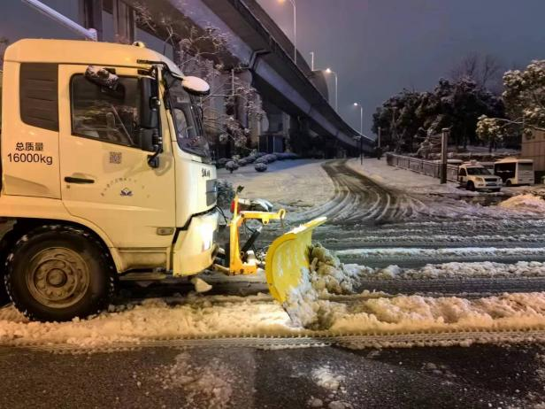作為路面環衛主要堅挺力量,公司東、西區全員出動,第一時間啟動預警響應和應急機制。按照“機械化除雪為主,人工除雪為輔”相結合的除雪作業模式,合理調度掃雪車、雪鏟車、雪滾車及融雪劑撒布機等車輛,積極開展掃雪除冰工作。全體員工放棄休息一連幾天通宵達旦輪番堅守一線,奮力掃除、清運路面冰雪,為人行道、過街天橋鋪上防滑草墊。同時利用夜間道路車輛較少的有利時機,通宵奮戰,組織開展大規模的除雪破冰作業,為廣大市民開辟出了一條條康莊大道。