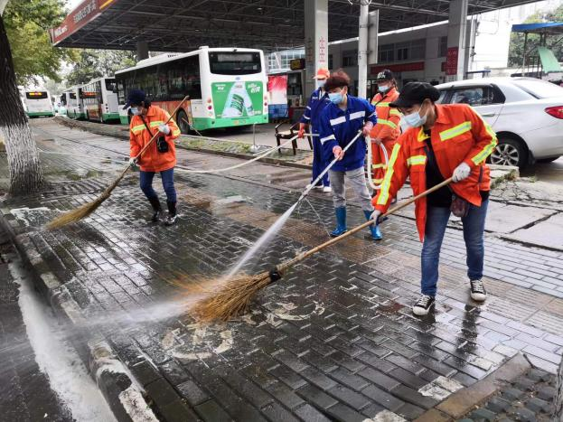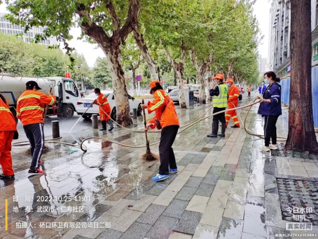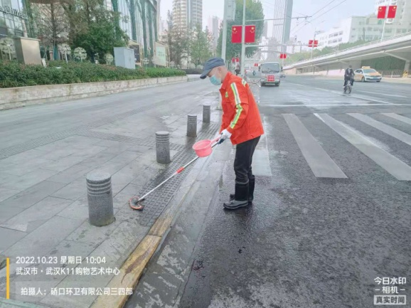 同時(shí),做好疫情防疫,加大消殺工作的落實(shí)。每日針對(duì)垃圾容器、作業(yè)車(chē)輛、收集轉(zhuǎn)運(yùn)點(diǎn)、大型垃圾轉(zhuǎn)運(yùn)站、公廁點(diǎn)位進(jìn)行嚴(yán)格的消殺工作,平均每日消耗消殺用品近200公斤。自10月20日至26日,硚環(huán)公司累計(jì)出動(dòng)近3000人次,作業(yè)車(chē)輛180臺(tái)次,清掃面積共500萬(wàn)方。