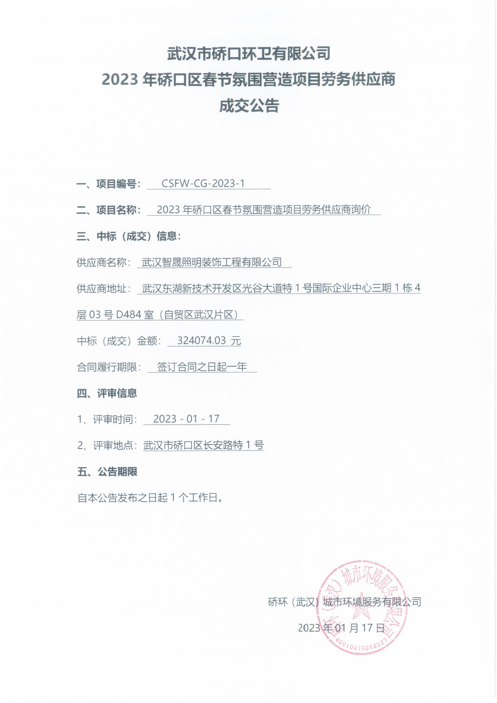 硚口區春節氛圍營造項目勞務供應商成交公告